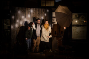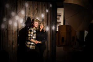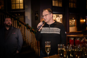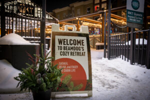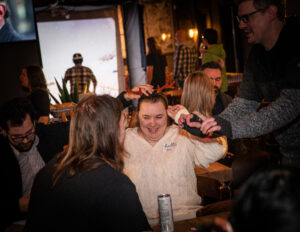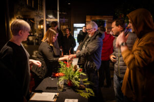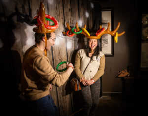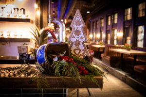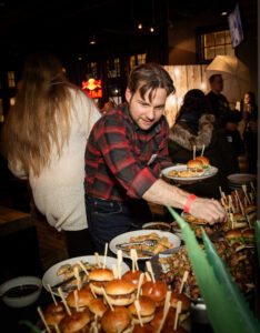 Event attendees got to gather, relax, and enjoy the cabin life at the “Cozy Cabin Holiday Party”. Beamdog staff and their guests walked along a snowy path strewn with vintage skis, skates, sleds, and snowshoes before entering the warm, welcoming interior of MKT. Throughout the night, people enjoyed great food and drinks, took silly photos at the photo booth, and celebrated in the company of one another.