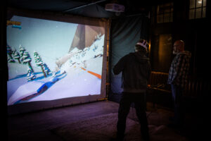 - Never seen before, the party featured a VR skiing activity that provided an immersive experience of skiing on a mountain.