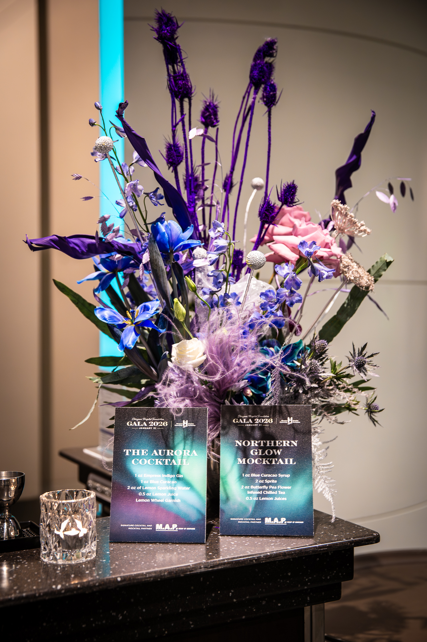 - The signature cocktail and mocktail featured butterfly pea tea, creating a color-changing effect that mimicked the northern lights.